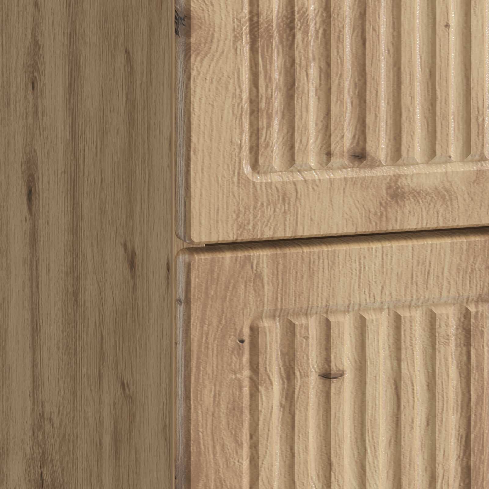 • Rakennettu teknisestä puusta: Kestävä ja tyylikäs muotoilu. Laadukkaasta teknisestä puusta valmistettu kaappi takaa pitkän käyttöiän ja hienostuneen ilmeen. Materiaali on kestävä naarmuilla ja kosteudelle, joten se sopii päivittäiseen käyttöön.