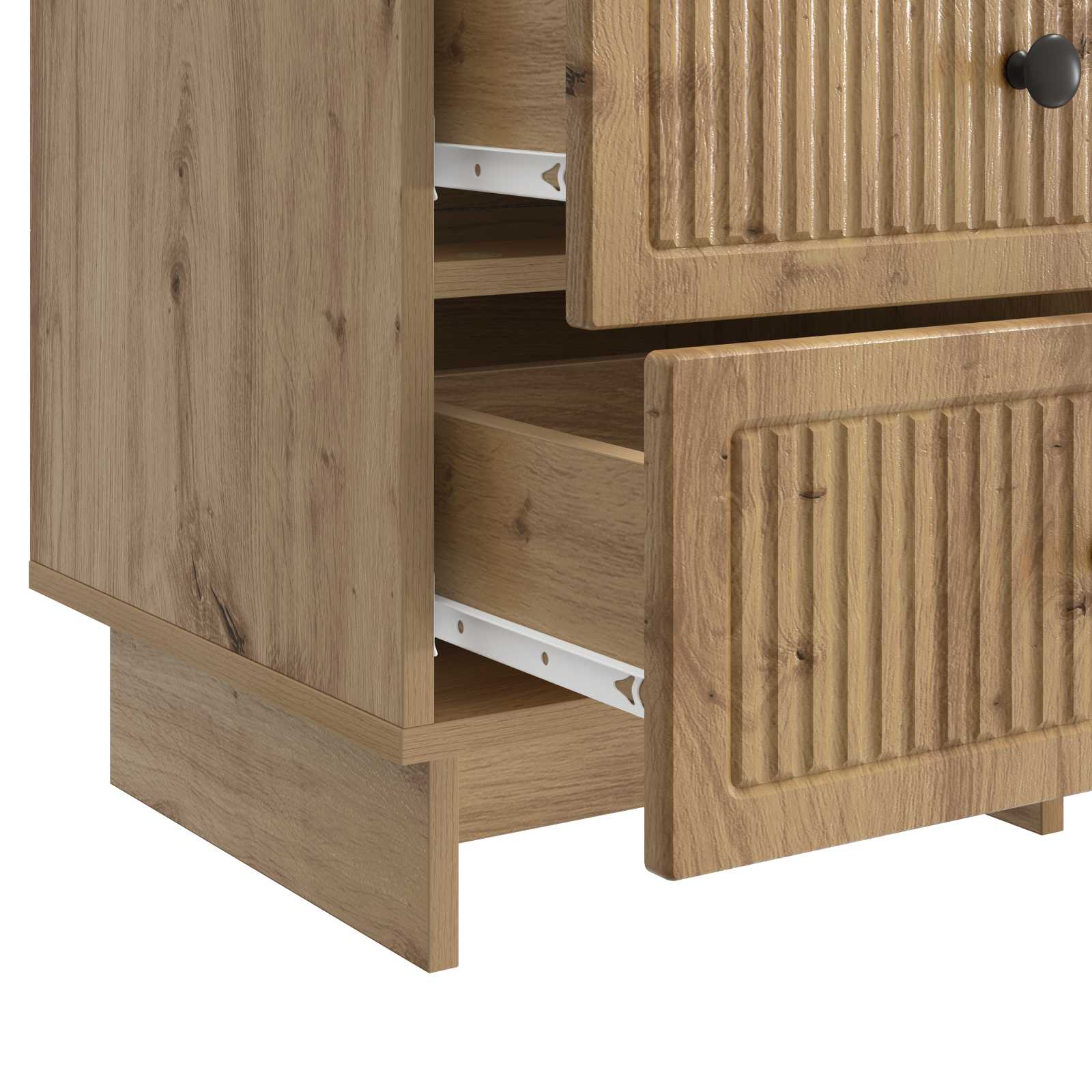 • Monikäyttöinen makuuhuoneen lisä: Tämä yöpöytäkaappi sopii monenlaisiin sisustustyyleihin ja tekee siitä mukautuvan palan, joka käy niin moderneihin kuin retrotyyleihin. Sen ajaton muotoilu ja käytännöllisyys tekevät siitä toiminnallisen ja myös visuaalisesti miellyttävän osan jokaisessa makuuhuoneessa.