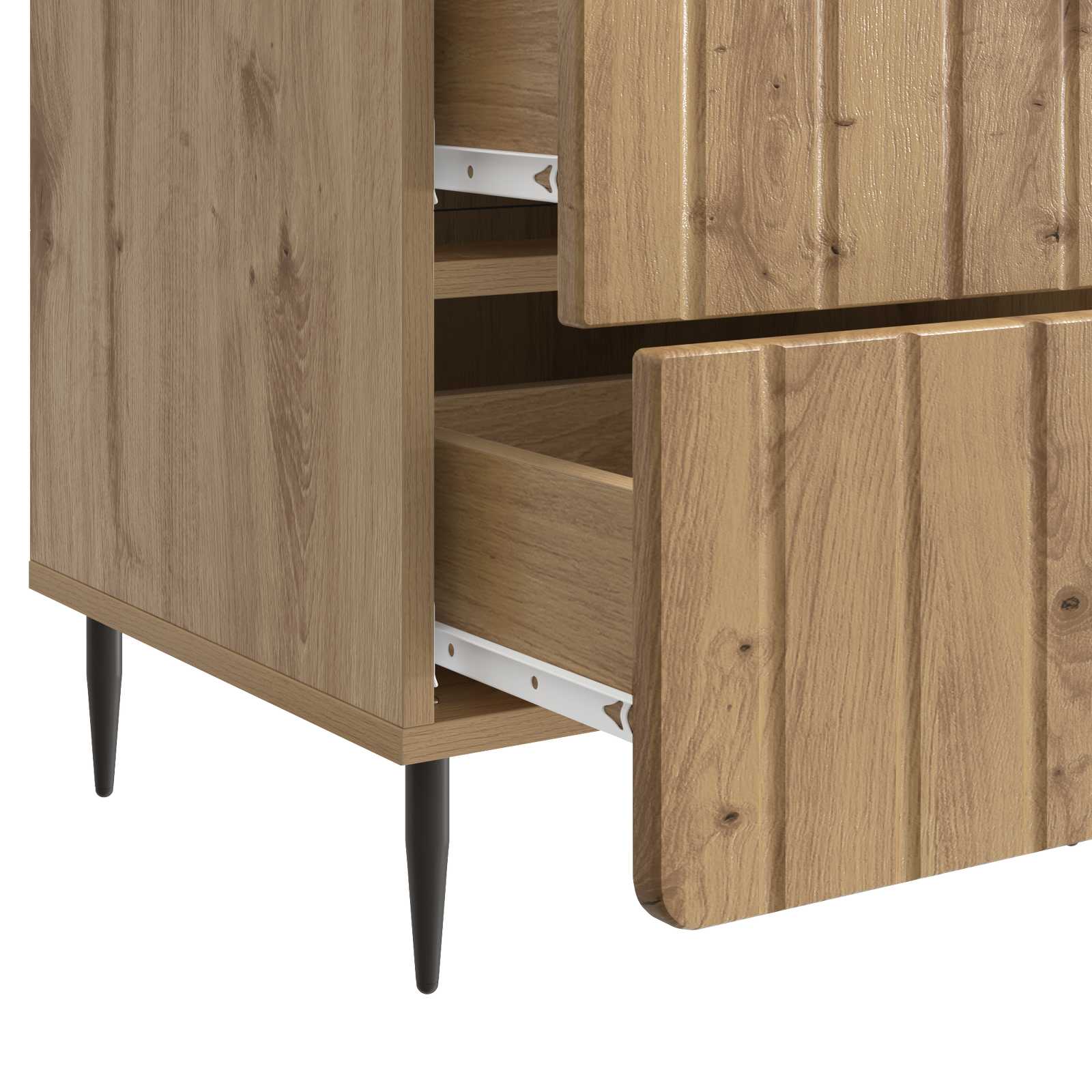 • Kestävä tekninen puu: Tämä kaappi on valmistettu teknisestä puusta, mikä takaa pitkäkestoisen kestävyyden. Materiaali tarjoaa kauniin kiillotetun ilmeen ja on kulutuskestävä, pitäen sen eleganttina vaivattomalla huolla.
