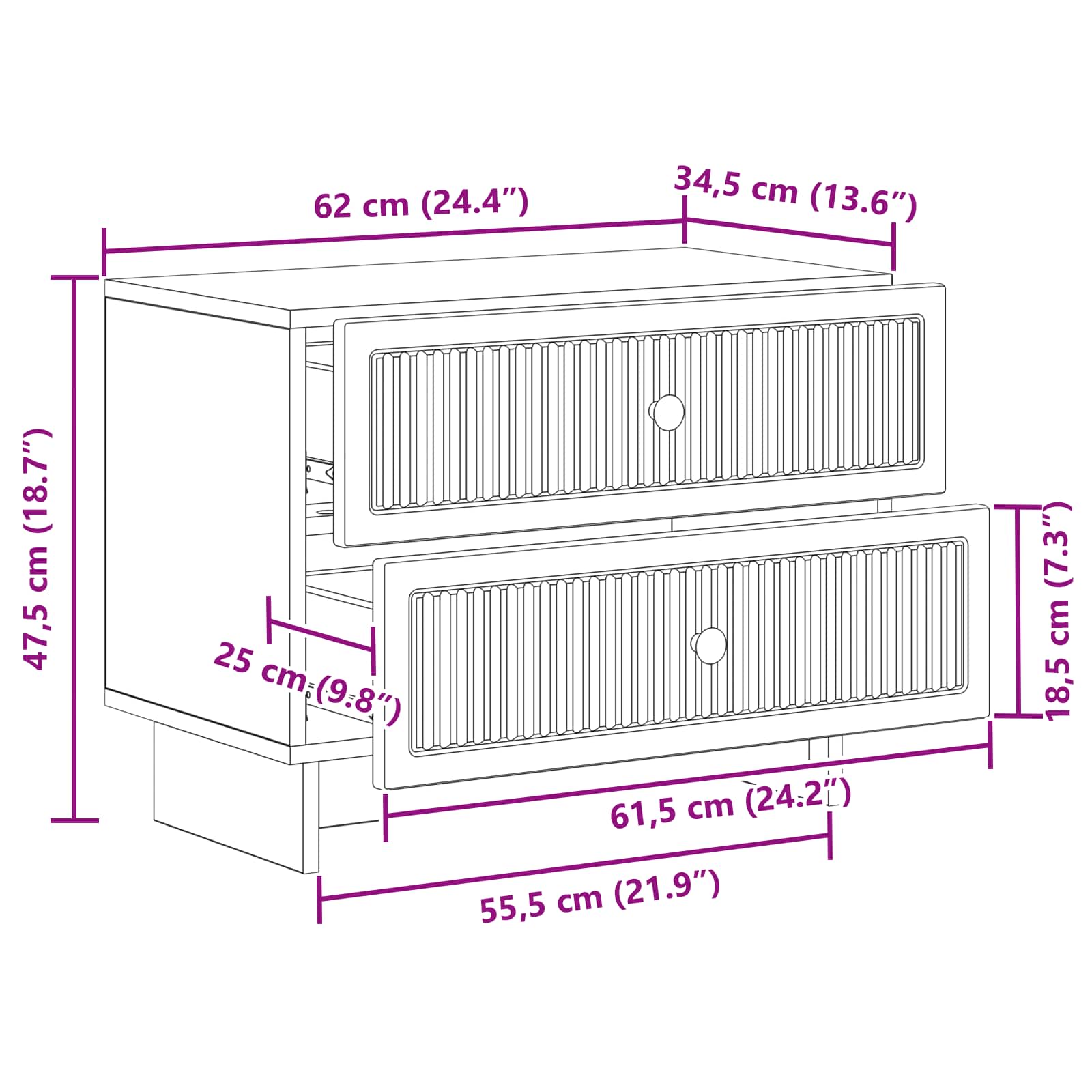 • Yleiset mitat: 62 x 34,5 x 47,5 cm (P x L x K)