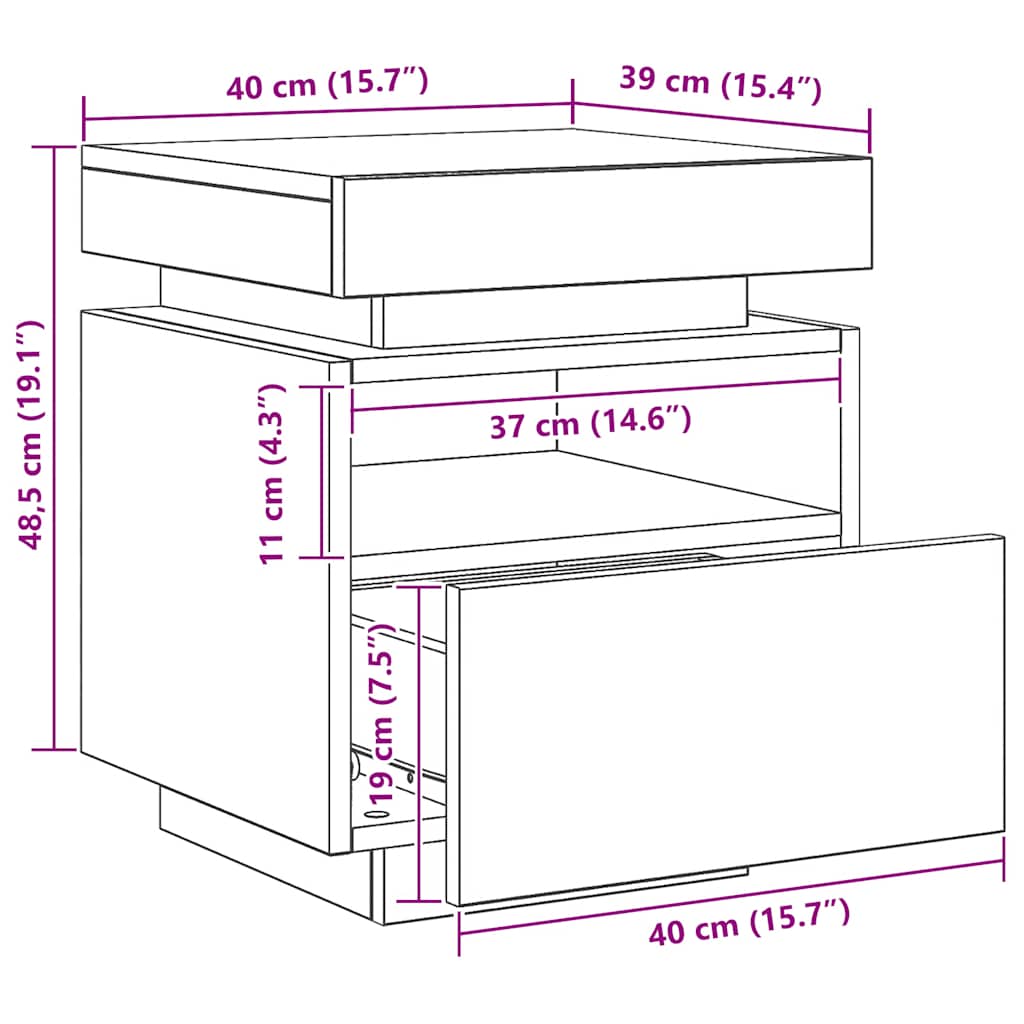 yöpöytäkaappi LED-valoilla Artisan Oak 40x39x48,5 cm