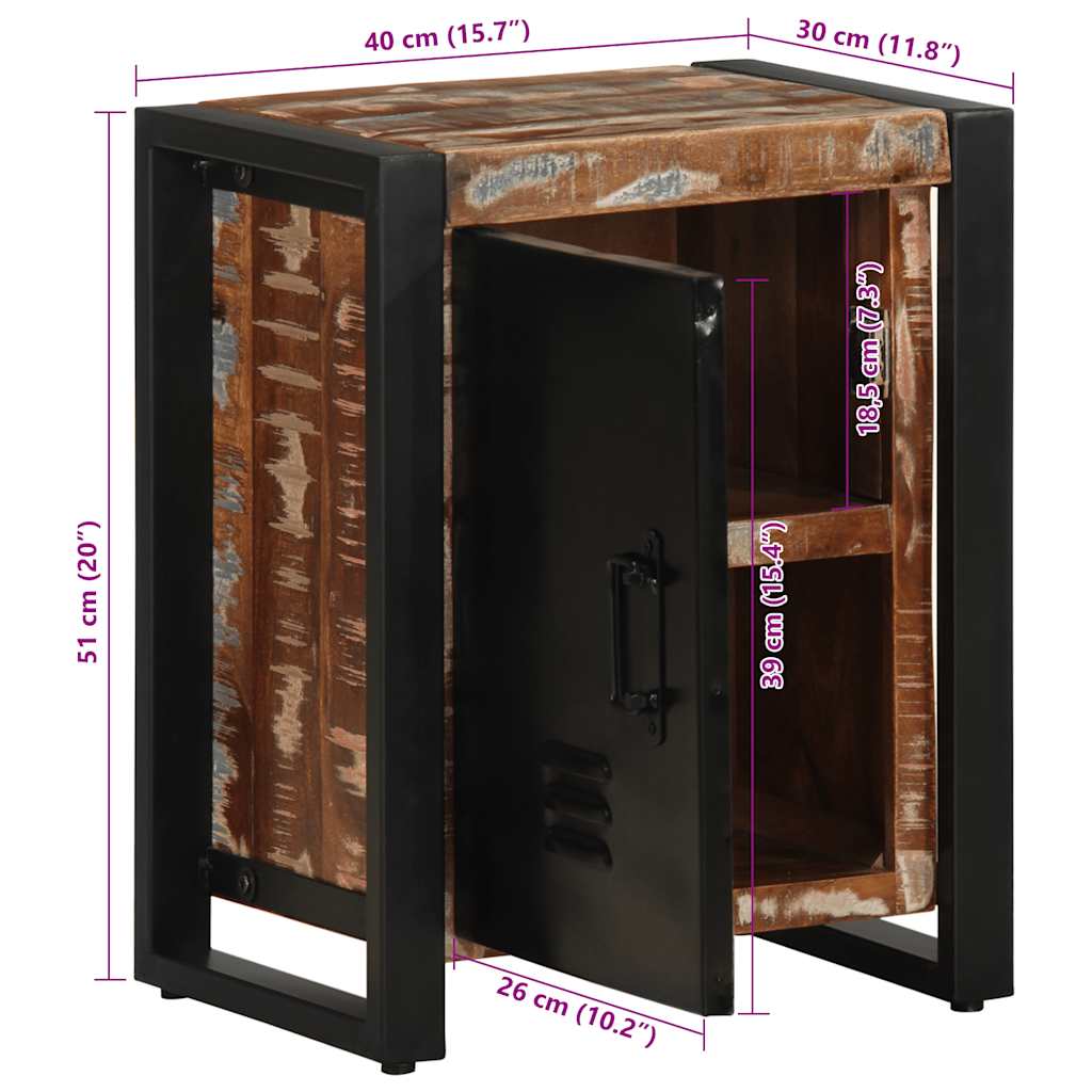 yöpöytäkaappi monivärinen 40x30x51 cm massiivipuu kierrätetty