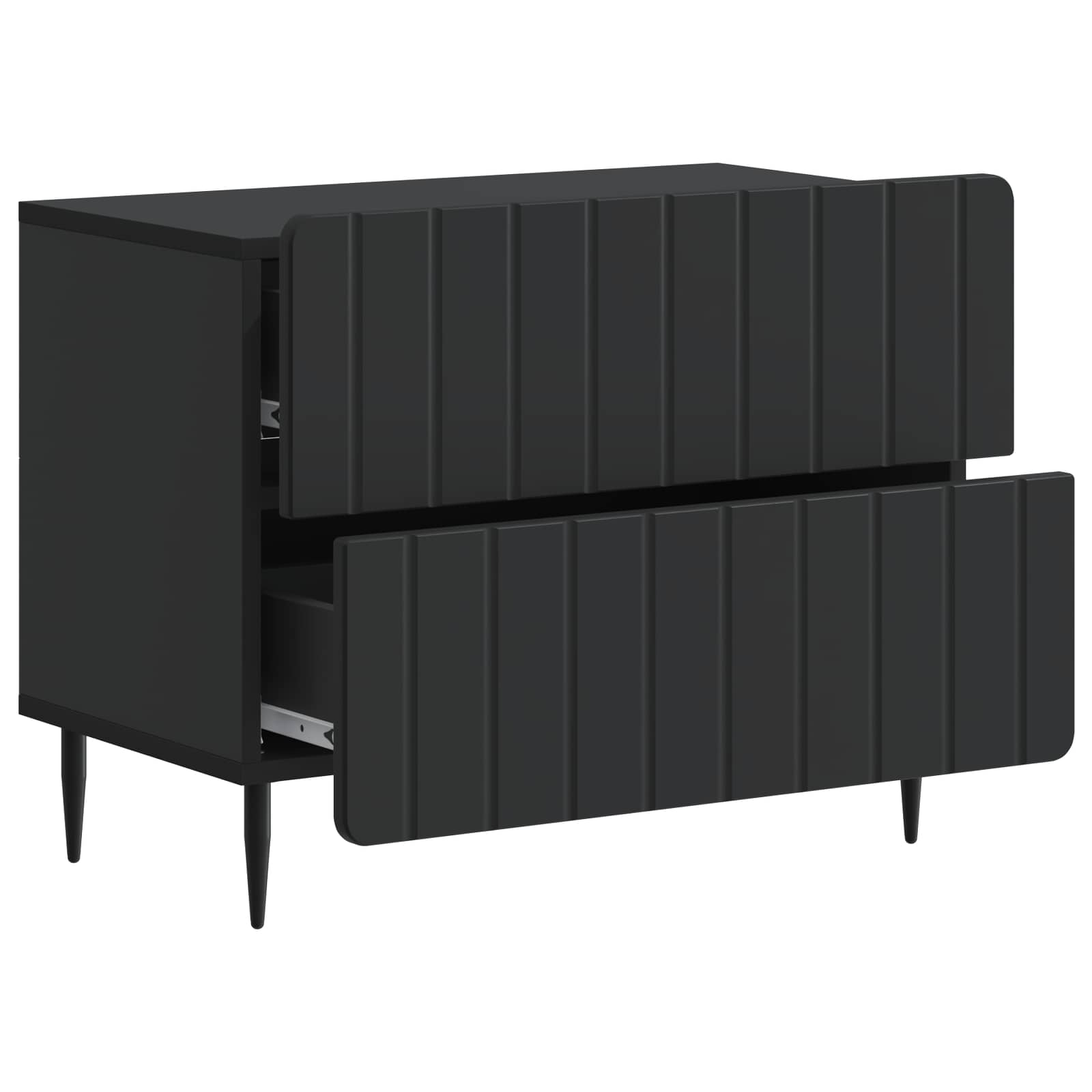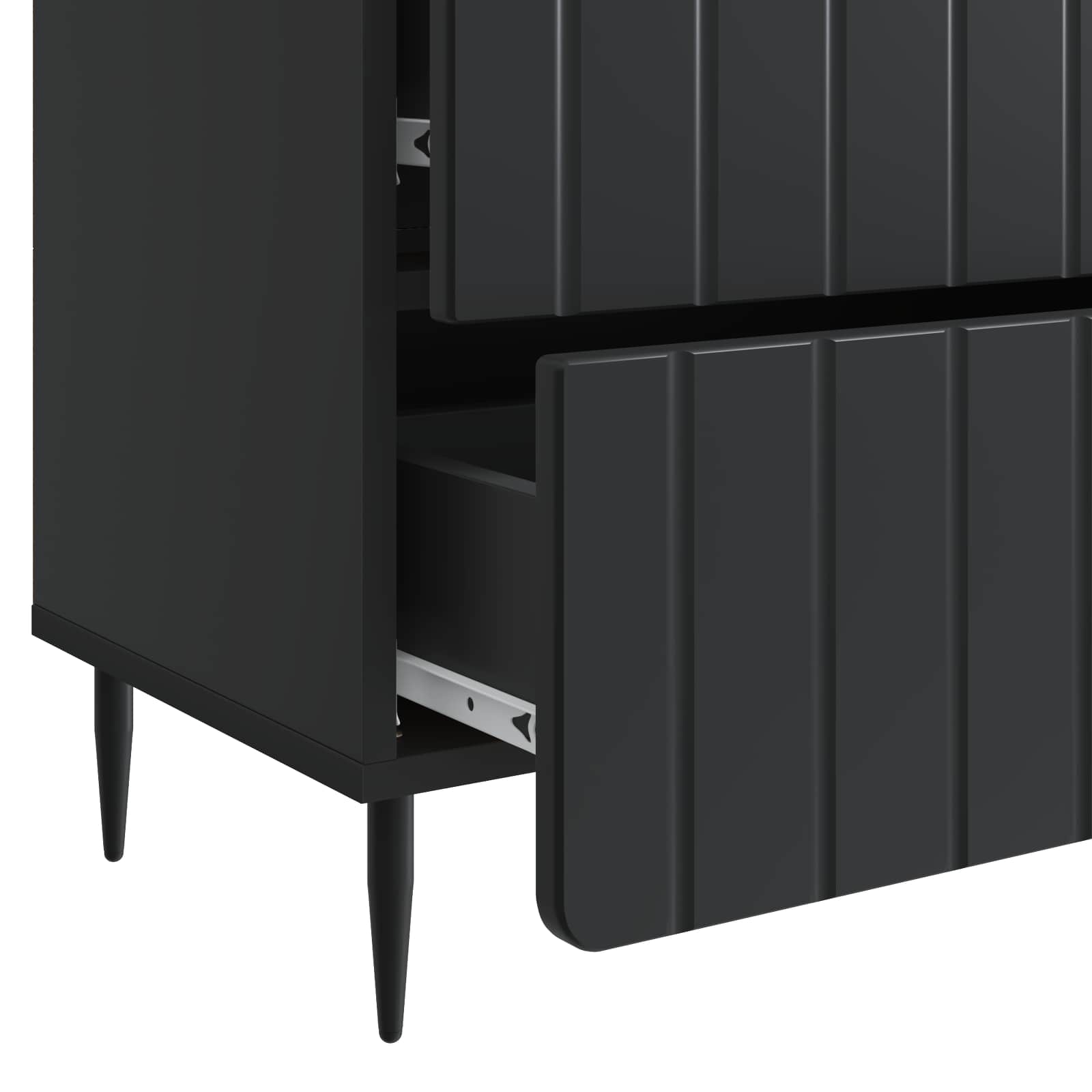 • Modernit rautajalat: Terävät rautajalat tuovat modernin ilmeen ja tukevat muotoa ja toimintaa. Niiden virtaviivainen muoto nostaa kaappia ja helpottaa siivousta sen alta.
