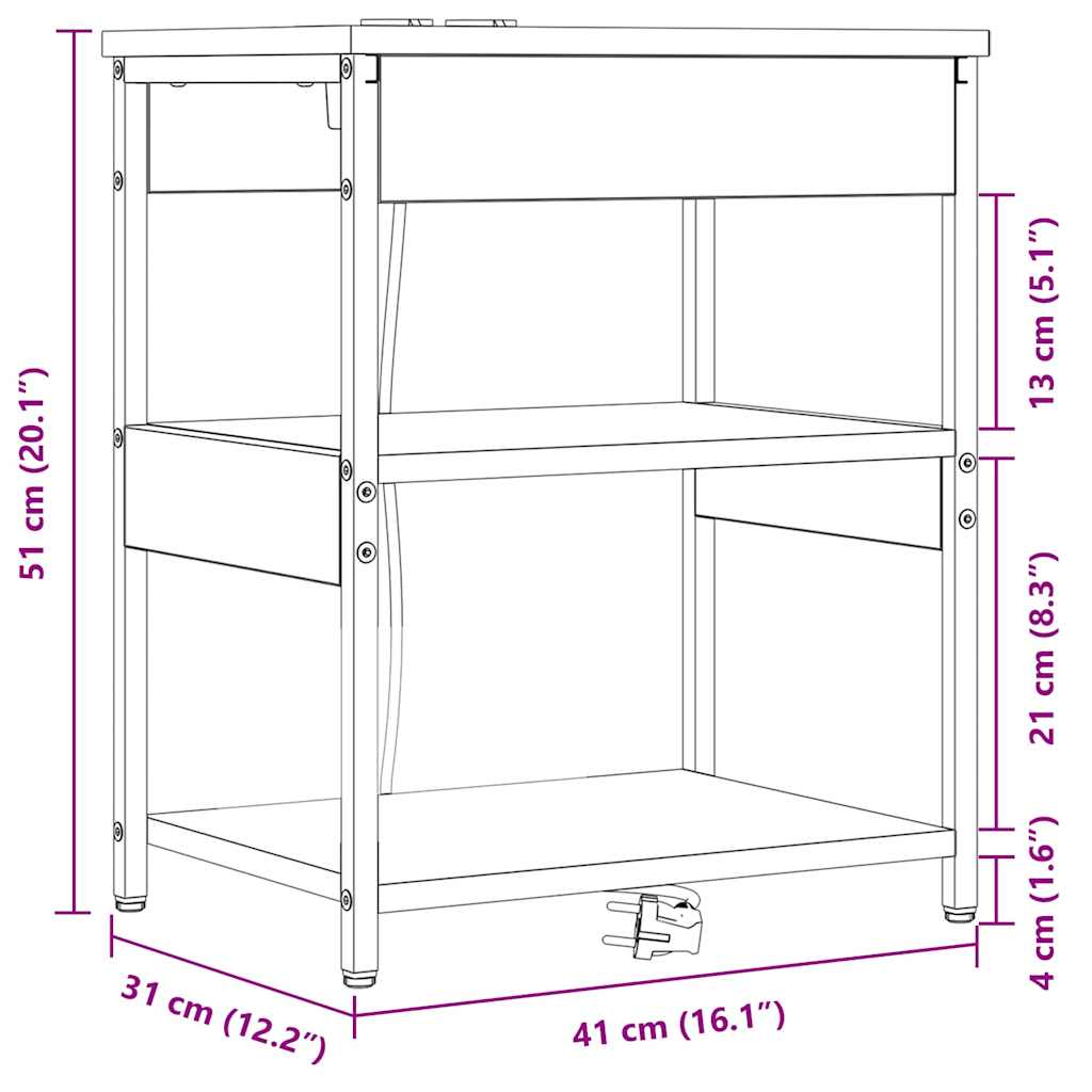 • Integroitu latausasema: Huolellisesti suunniteltu sisäänrakennetulla pistorasialla, tämä yöpöytä helpottaa laitteiden lataamista yön aikana. Latausasema on helposti saavutettavissa ilman ylimääräistä vaivannäköä ja se pitää tilan siistinä ja tehokkaana.