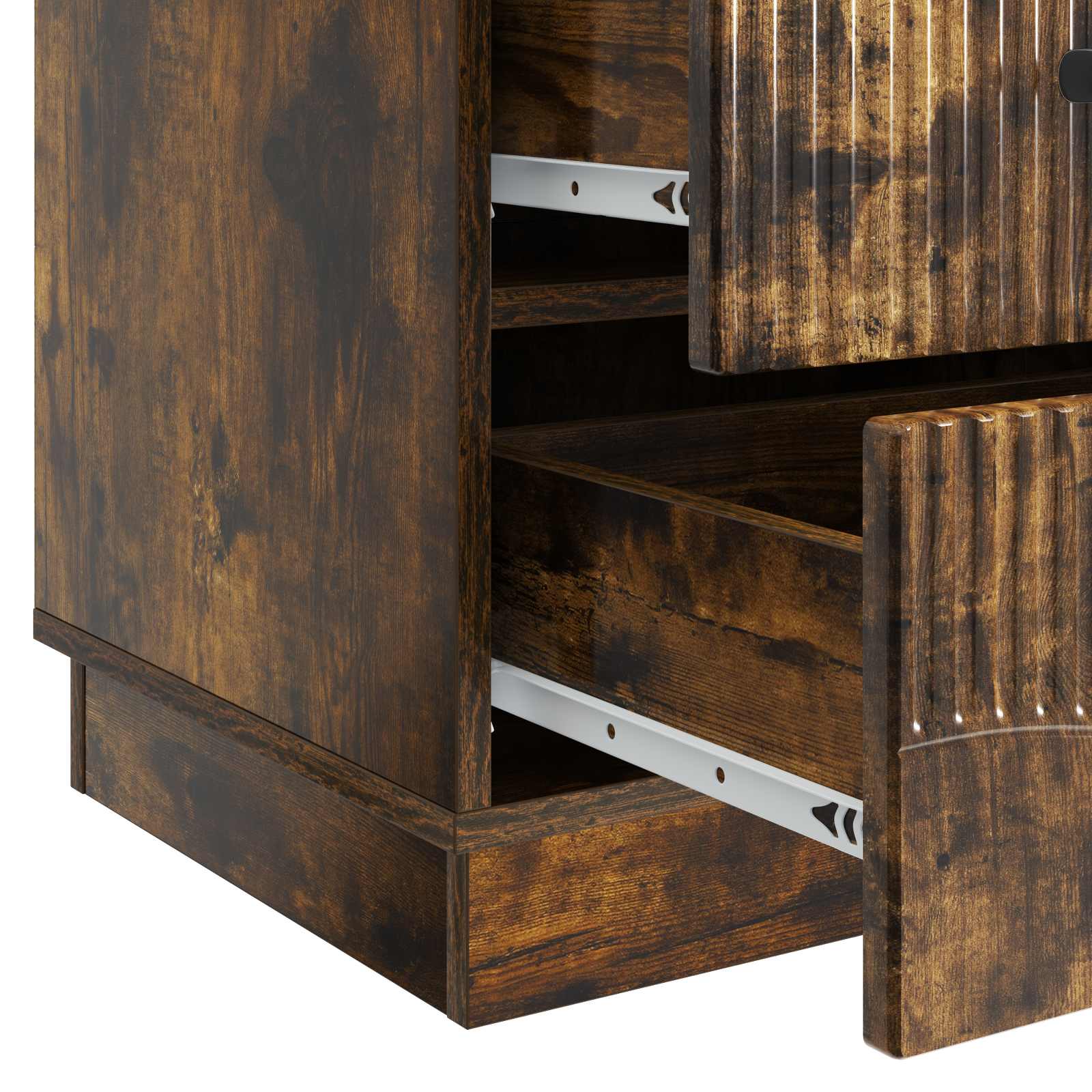 • Teknisen puun rakenne: Kesti ja pitkäikäinen! Kaappi on tehty teknisestä puusta, ja sen pinta on tiivis ja kestävä, joka kestää päivittäistä käyttöä. Tyylikäs viimeistely tuo hienoa ilmettä makuuhuoneeseen.