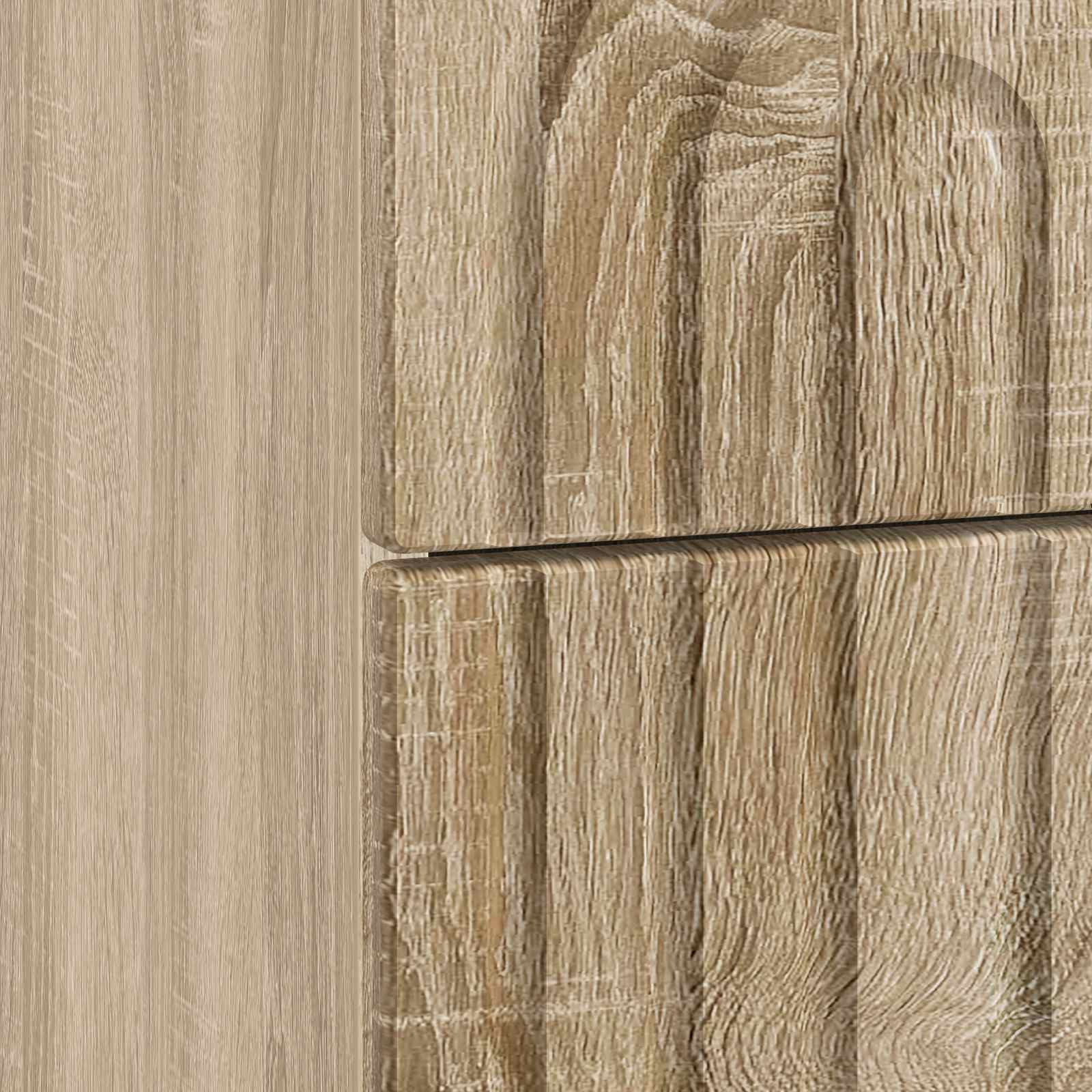 • Tekninen puu rakenne: Kaappi on valmistettu teknisestä puusta, kestävää ja luotettavaa. Sileä pinta tuo estetiikkaa ja kestävyyttä, jolloin se on arvokas lisä mihin tahansa huoneeseen.