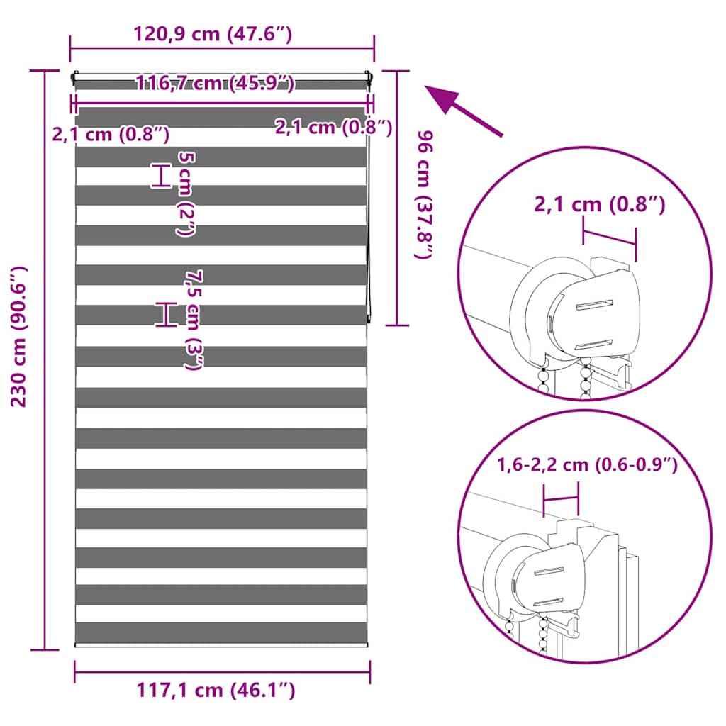 Tämä elegantti rullakaihdin on ihanteellinen valinta moderniin kotiin ja sitä voidaan käyttää tyylikkäänä vaihtoehtona perinteisille venetsialaisille tai sälekaihtimille. Kaihdin on varustettu kahdella vuorottelevalla rinnakkaisuudella himmeästä ja läpikuultavasta kankaasta. Kaihtimen aseman säätämisellä voidaan mukauttaa himmeitä ja läpikuultavia etu- ja takakerroksia näin, että ne luovat ainutlaatuisen valovaikutuksen, joka sopii erinomaisesti kaikiin moderniin elintilaan. Rullaverho on valmistettu 100% polyesteristä. Se on varustettu valkoisella vetoketjulla, joka on helppo asentaa ja käyttä. Huomaa, että annetulla koolla tarkoitetaan kankaan kokoa. Yläkiskon leveys, mukaan lukien asennustarvikkeet, on 3 senttimetriä leveämpi, kuin rullaverhon leveys. Toimitus sisältää 1 x 120 cm alumiini yläkisko 117 x 230 seeprakuvioisella kankaalla, 1 x 120 cm yläkisko, 1 x 120 cm raskas pohjakisko, 2 x pidike, 2 x koukku, 1 x ketjuhaltija, 2 x tiiviste ja 1 x palloketju.