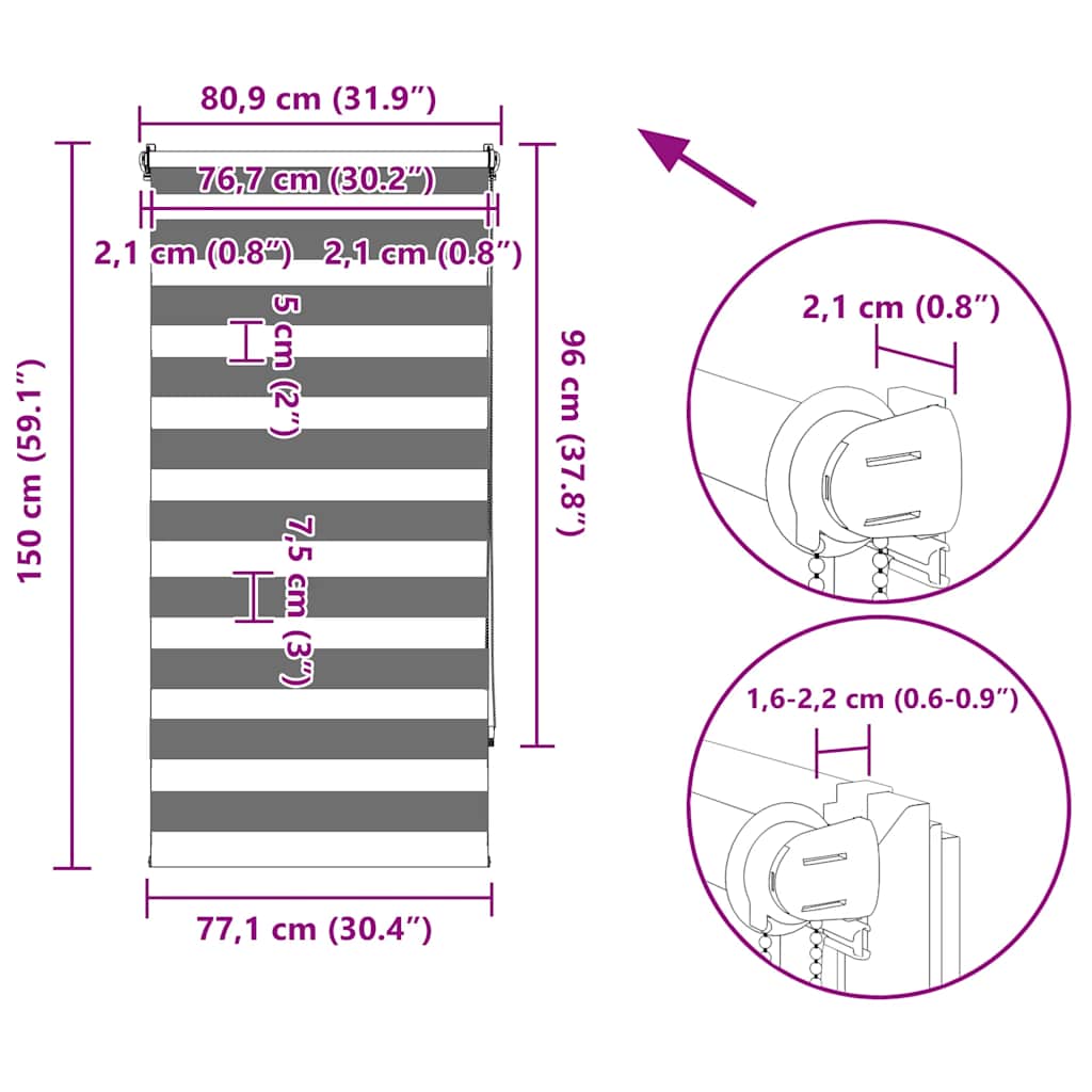 Tämä elegantti rullakaihdin on ihanteellinen valinta moderniin kotiin ja sitä voidaan käyttää tyylikkäänä vaihtoehtona perinteisille venetsialaisille tai sälekaihtimille. Kaihdin on varustettu kahdella vuorottelevalla rinnakkaisuudella himmeästä ja läpikuultavasta kankaasta. Kaihtimen aseman säätämisellä voidaan mukauttaa himmeitä ja läpikuultavia etu- ja takakerroksia näin, että ne luovat ainutlaatuisen valovaikutuksen, joka sopii erinomaisesti kaikiin moderniin elintilaan. Rullaverho on valmistettu 100% polyesteristä. Se on varustettu valkoisella vetoketjulla, joka on helppo asentaa ja käyttä. Huomaa, että annetulla koolla tarkoitetaan kankaan kokoa. Yläkiskon leveys, mukaan lukien asennustarvikkeet, on 3 senttimetriä leveämpi, kuin rullaverhon leveys. Toimitus sisältää 1 x 80 cm alumiini yläkisko 77 x 150 seeprakuvioisella kankaalla, 1 x 80 cm yläkisko, 1 x 80 cm raskas pohjakisko, 2 x pidike, 2 x koukku, 1 x ketjuhaltija, 2 x tiiviste ja 1 x palloketju.